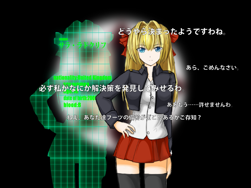 次、四人目はインテリ系お嬢様軍人、サラ・ラドクリフ。